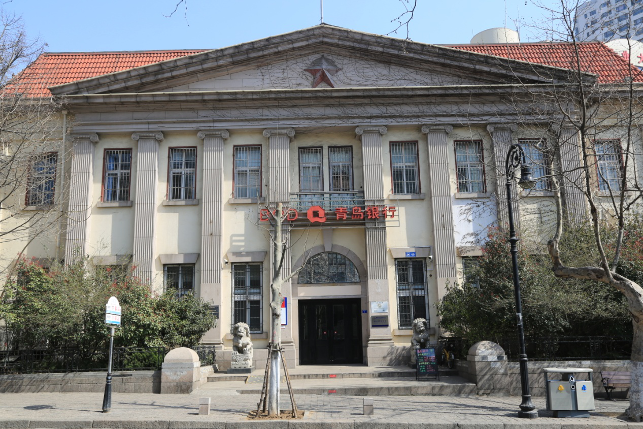 橫濱正金銀行青島支店舊址,位于市北區(qū)館陶路1號,仿歐式公共建筑風(fēng)格。占地7.17畝,基地面積4780平方米,建筑面積1787平方米,磚石木結(jié)構(gòu),地上二層,地下一層,有閣樓?;◢徥龌⒒覊γ婕t瓦折坡屋面,上有氣窗。正門西向,主立面有8根貼面石柱直達(dá)二層窗頂部,中央大三角山墻突出層線飾條,門上層有鐵花柵欄露天涼臺。建筑上部大廳高5.5米,廳內(nèi)有方型藻井。二層的正金大樓整體呈長方形。
