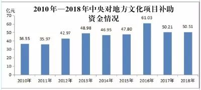 2018年,中央財政通過繼續(xù)實施“三館一站”免費(fèi)開放、非物質(zhì)文化遺產(chǎn)保護(hù)、公共數(shù)字文化建設(shè)等文化項目,共落實中央補(bǔ)助地方文化專項資金50.51億元,比上年增長0.6%。
