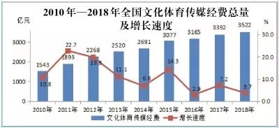 據(jù)財政部統(tǒng)計,2018年全國財政支出中,文化體育傳媒經(jīng)費(fèi)3522億元,比上年增長3.7%,占財政支出的1.59%,比重比上年下降0.07個百分點(diǎn)。