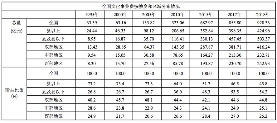 全年全國文化事業(yè)費(fèi)928.33億元,比上年增加72.53億元,增長8.5%;全國人均文化事業(yè)費(fèi)66.53元,比上年增加4.96元,增長8.1%。